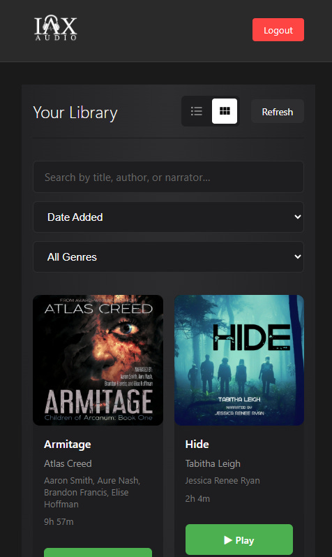While the website is finished and onboarding authors, I will soon be opening it up to beta test for readers. This will be a chance for readers to jump in, test the system, purchase some indie author audiobooks, and let others know what they think. The website is mobile friendly and has been fully tested to support background play, lock screen controls, and Apple Car Play and Android Audio support.
